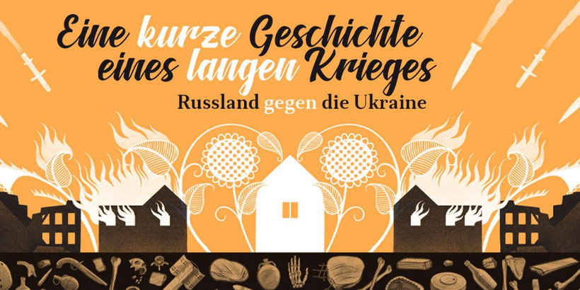 Das Schreiben dieser Geschichte war emotional sehr schwierig – während des Schreibprozesses habe ich die meiste Zeit geweint. Ich glaube, für die Illustrator*innen war es noch schwieriger, die Gesichter russischer Propagandist*innen und ähnlicher Personen zeichnen zu müssen. :) Als ich an dem Comic arbeitete, dachte ich in erster Linie an Menschen aus dem Ausland – ich musste erklären, wer die „Sechziger“ waren, was der „Holodomor“ war und so weiter. Für Ukrainer*innen wird EINE KURZE GESCHICHTE EINES LANGEN KRIEGES eher ein Kunstbuch sein, ein Artefakt, das man als Andenken kauft, weil uns die Hauptbotschaft bereits sehr klar ist. Aber ich glaube, dass die Zeit vergehen wird, dass alles vergessen werden wird, auch wenn die Geschichte gerade geschrieben wird. In 20 Jahren wird dieses Buch einen anderen Eindruck hinterlassen. Es ist eine Aufzeichnung unseres Kampfes, unseres fortwährenden Kampfes für Freiheit und eine Dokumentation der anhaltenden russischen Aggression. Ich möchte, dass die Leser*innen verstehen, dass das, was jetzt geschieht, kein Einzelfall ist – es ist Teil eines langen historischen Musters. Und vor allem sind es ukrainische Stimmen, die eine ukrainische Geschichte erzählen.